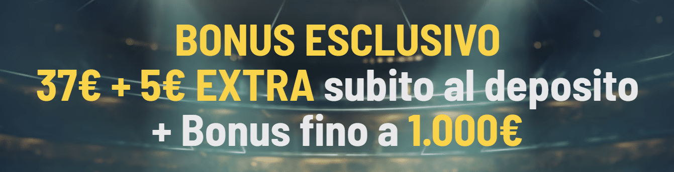- Bonus Scommesse: 7€ bonus al deposito + Bonus fino a 1000€